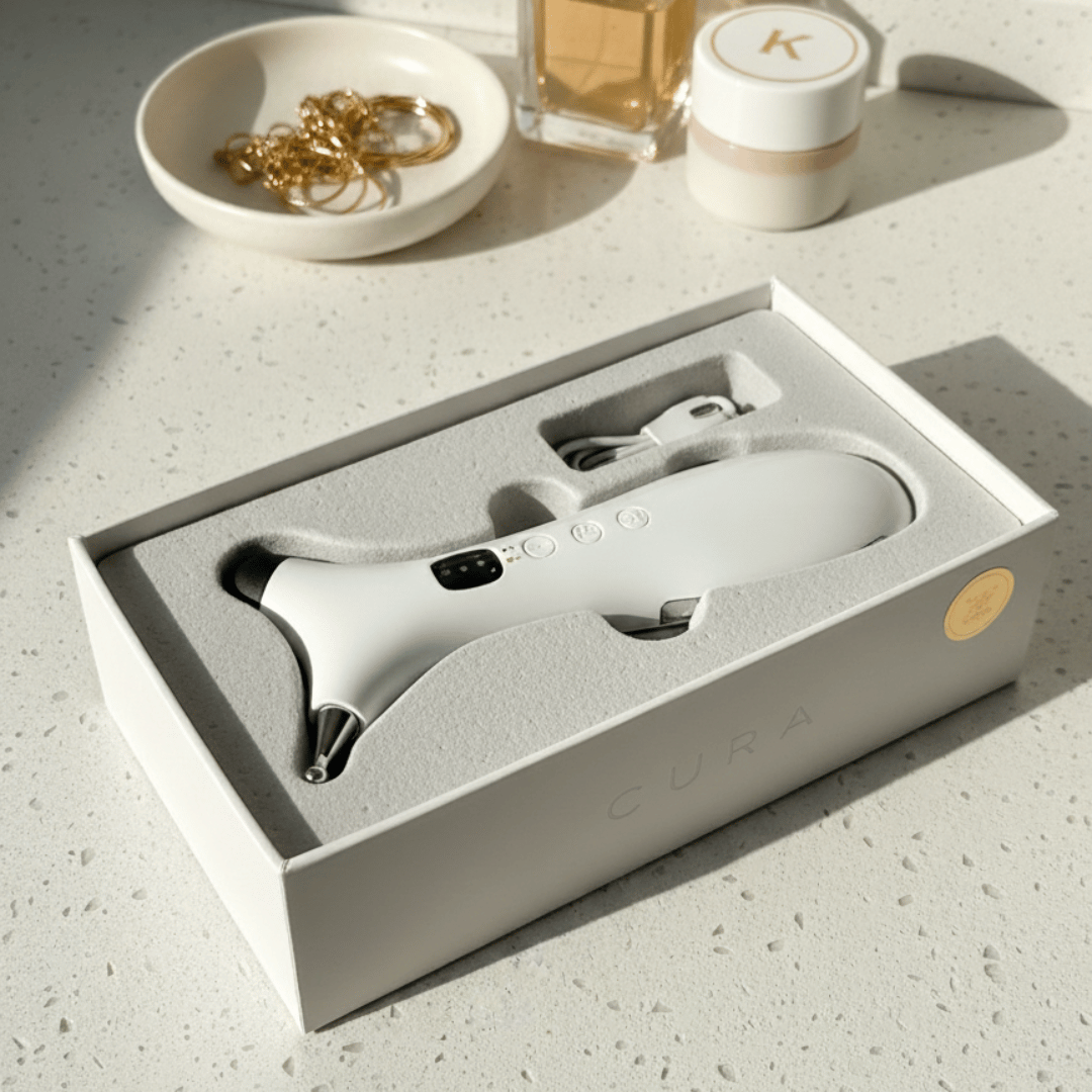 Yes, the Cura Pen's EMS is specifically calibrated for facial use with low-voltage output (0-30V) and gentle microamp current. It's the same technology TMJ specialists use in clinics. However, don't use it if you have a pacemaker, are pregnant, or have epilepsy.